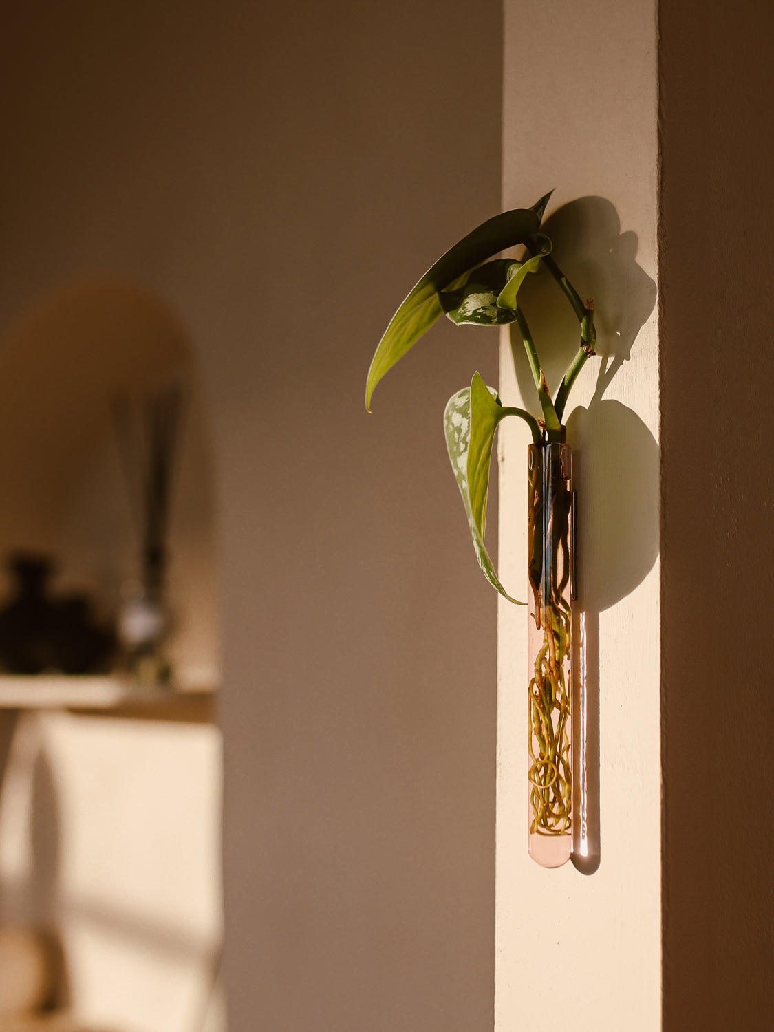 Belle de jour is a mirror with a wooden bottom in which the cavities allow you to slide the branches of your choice.