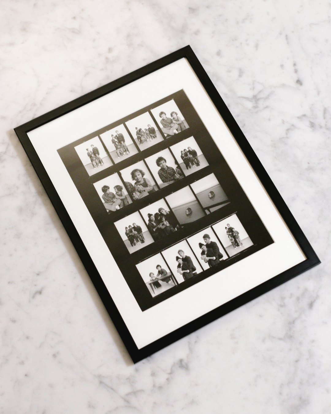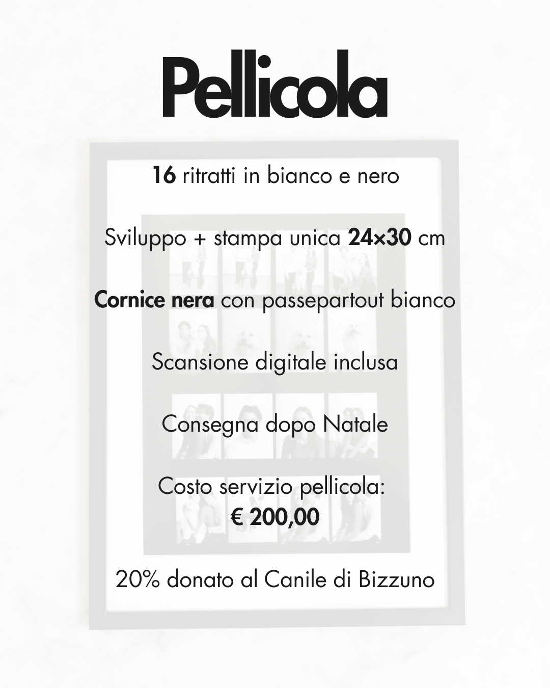 You will be taken 12 black and white photos , which will be printed as a "contact sheet" on a single sheet of 25 x 30 cm photographic paper and this will then be framed in a wooden frame with passe partout.