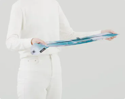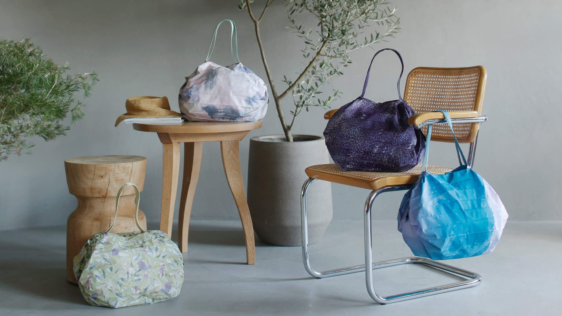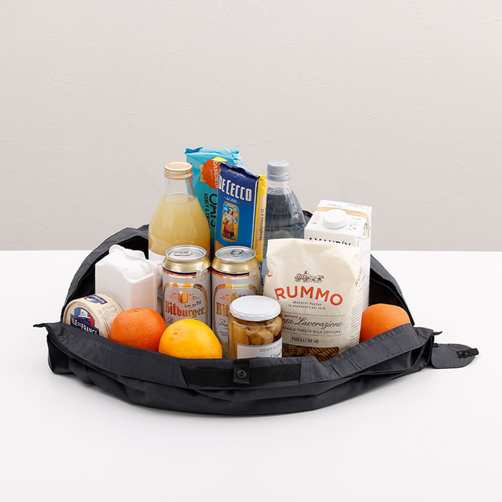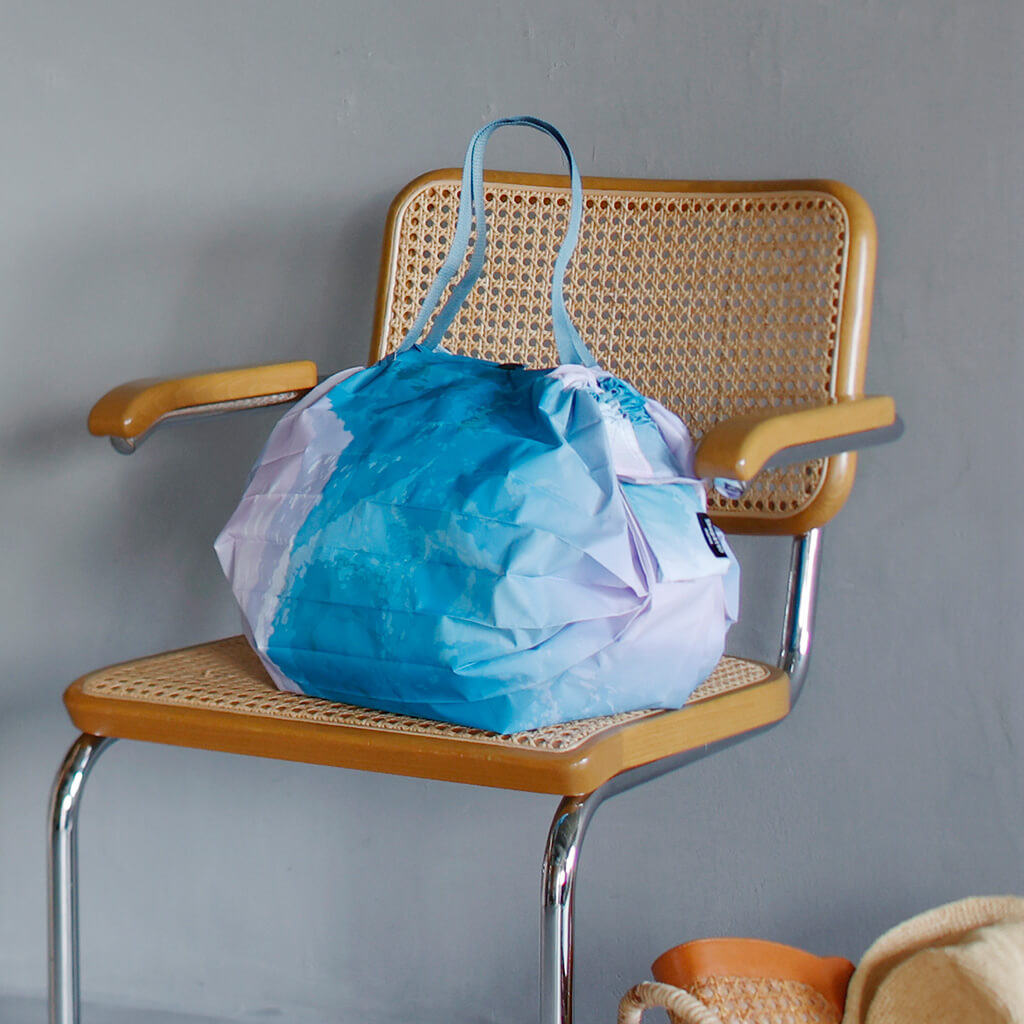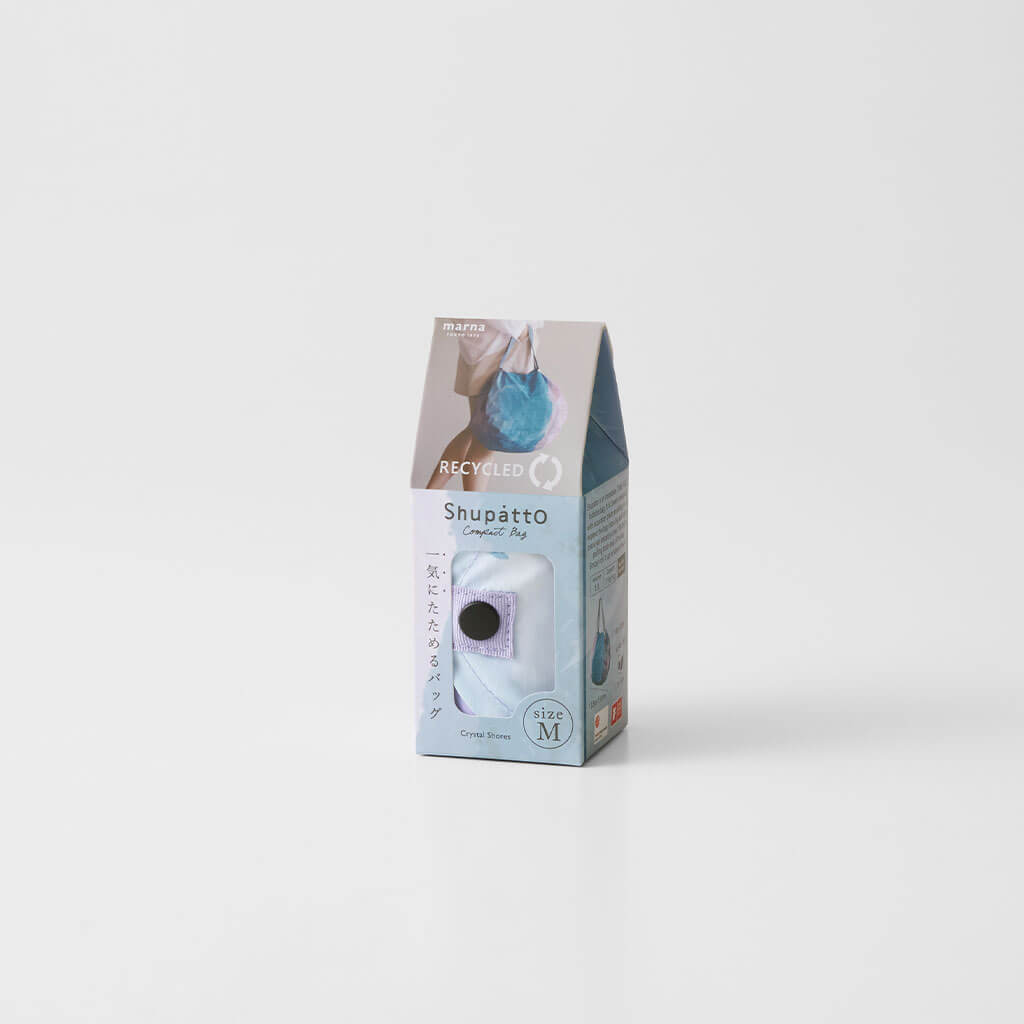 Shupatto può essere ripiegata contemporaneamente tirando entrambe le estremità, vuole essere una borsa "sempre con te" adatta ad ogni occasione.