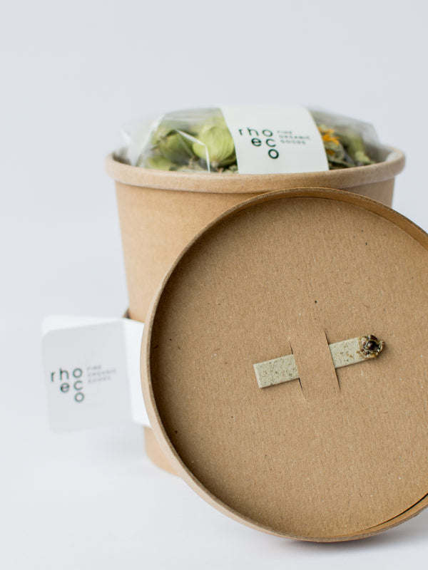 Il suo packaging è pensato in ottica di circolarità, una volta terminata la tisana, pianta il bastoncino di semi che puoi trovare sotto al coperchio e coltiva all’interno del vasetto di carta le tue prossime tisane🌱