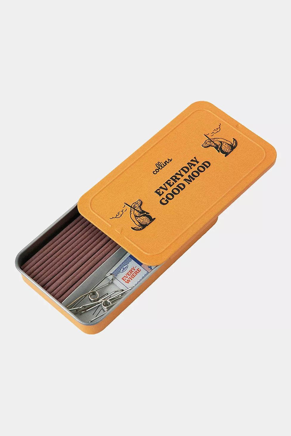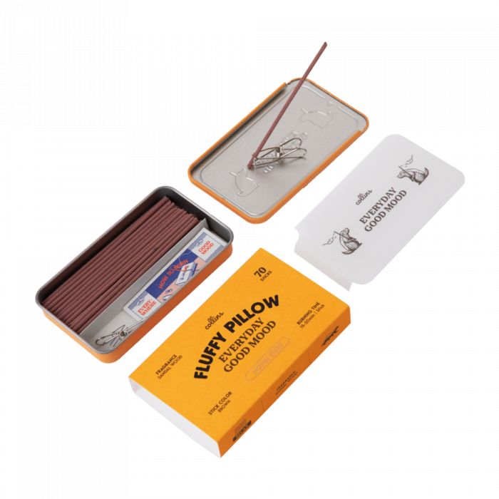 Le fragranze proposte spaziano da note floreali a legnose, offrendo una varietà di profumazioni adatte a diverse esigenze e momenti della giornata. Ogni confezione contiene 70 bastoncini di incenso, ciascuno con una durata di combustione di circa 15-20 minuti. Il packaging è studiato per essere pratico e portatile, includendo un astuccio in metallo resistente con un supporto integrato per l'incenso.