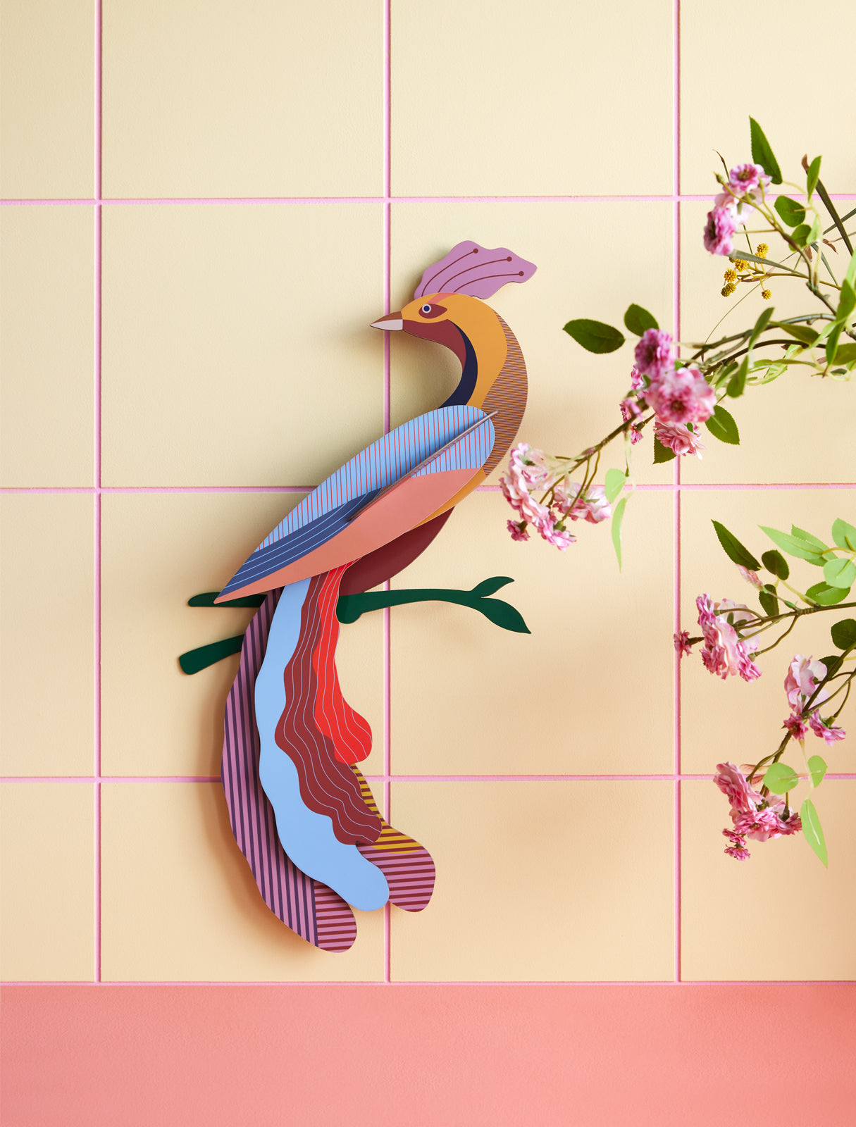 Questo uccello del paradiso in cartone riciclato è una decorazione originale per la tua casa, nonchè un regalo diverso dal solito, colorato e graficamente unico.