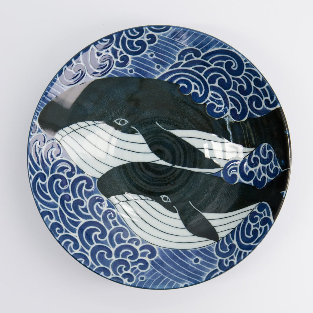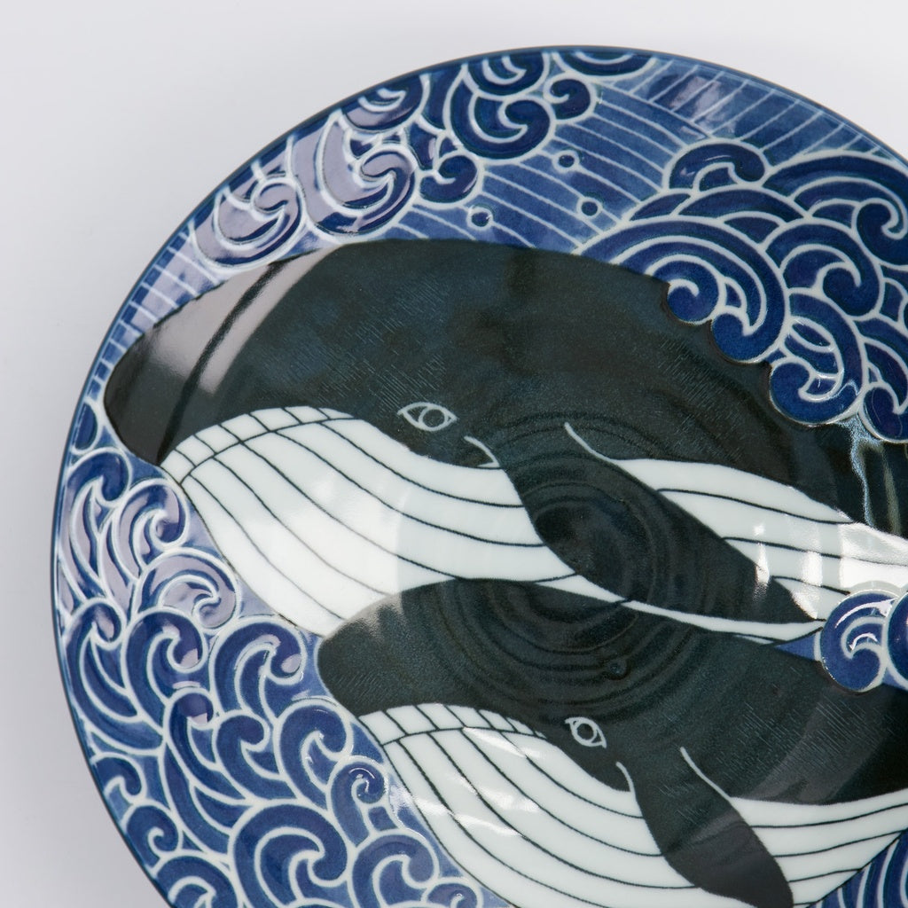 Realizzata in porcellana giapponese di alta qualità, questa linea si distingue per il motivo tradizionale Seigaiha — le “onde blu dell’oceano” — simbolo di pace, buona fortuna e continuità.