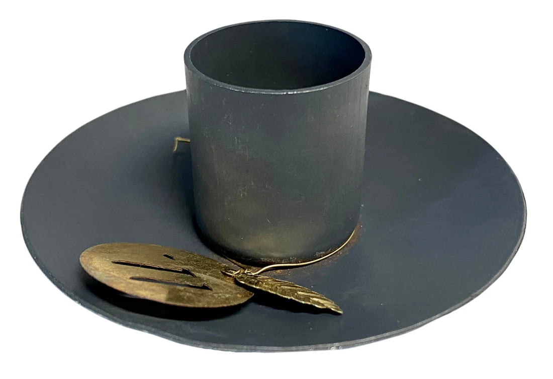 Fatto in metallo color antracite, si adatta con discrezione a tutte le apparecchiature e il dettaglio della fogliolina in ottone (che si può eventualmente togliere) dona raffinatezza al tutto.