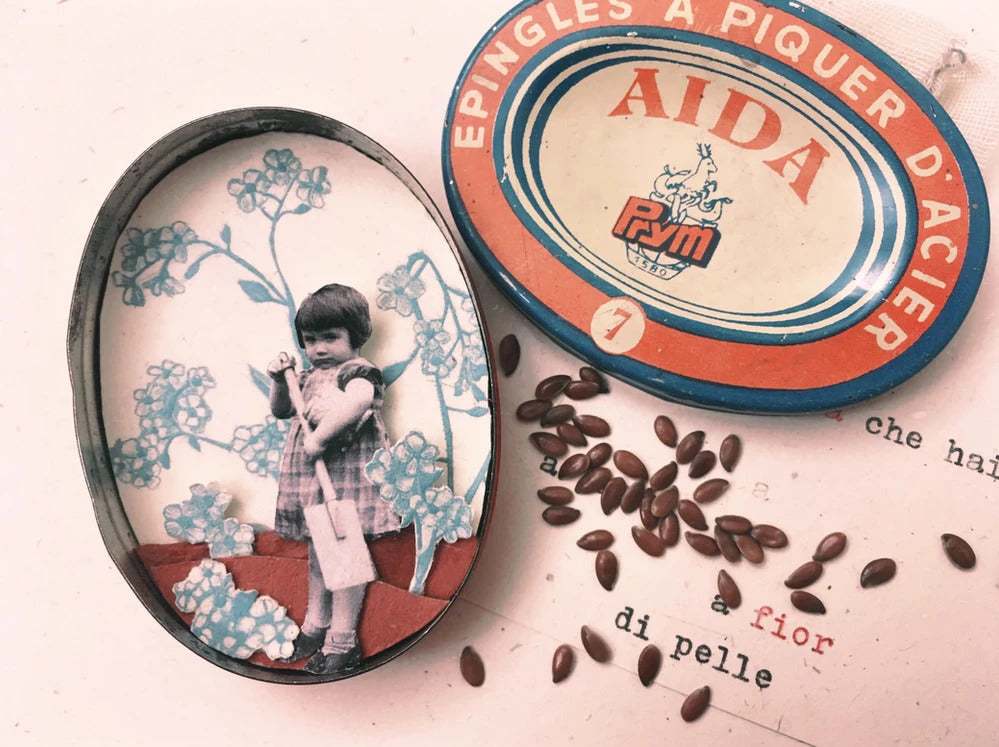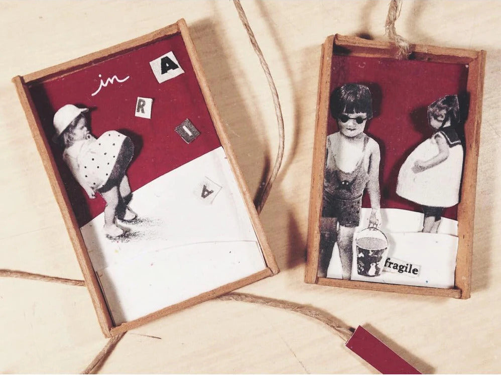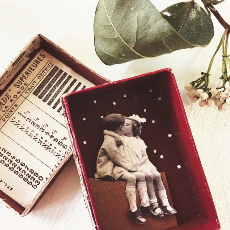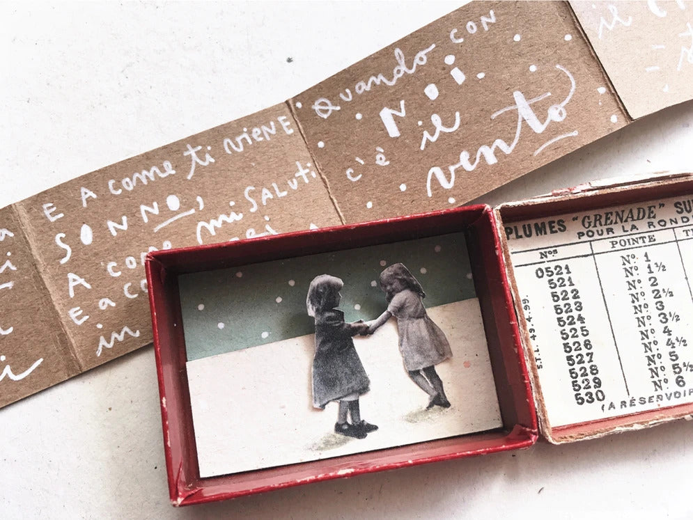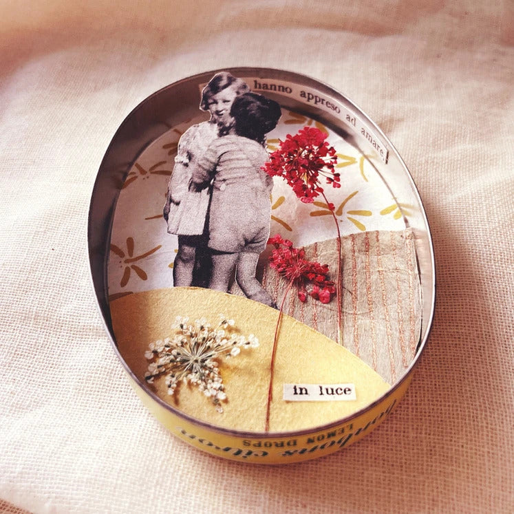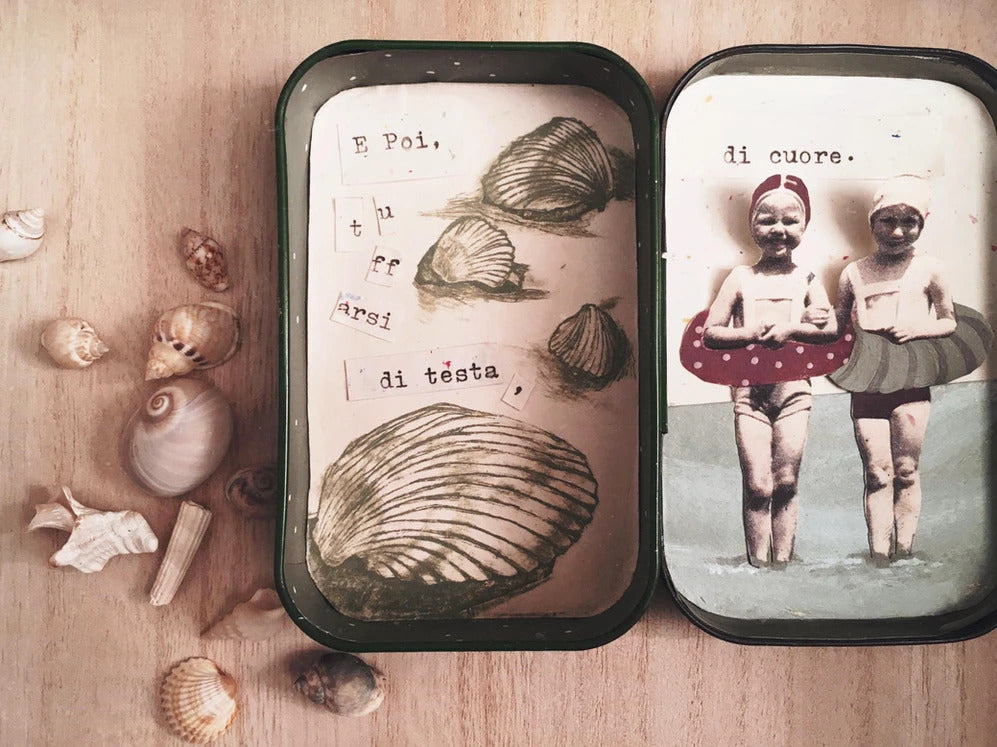 Ad attenderti troverai un buffet ricco di piccoli oggetti antichi, fiori, carte, parole, immagini, e tante altre piccole meraviglie in cerca di una storia. Tu non dovrai fare altro che scegliere la tua scatolina e arredarla.