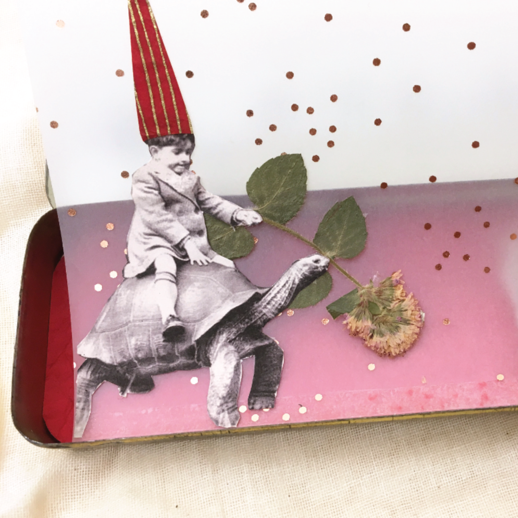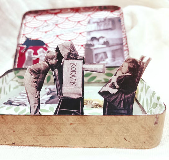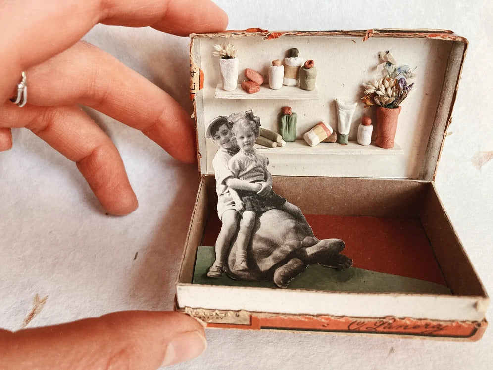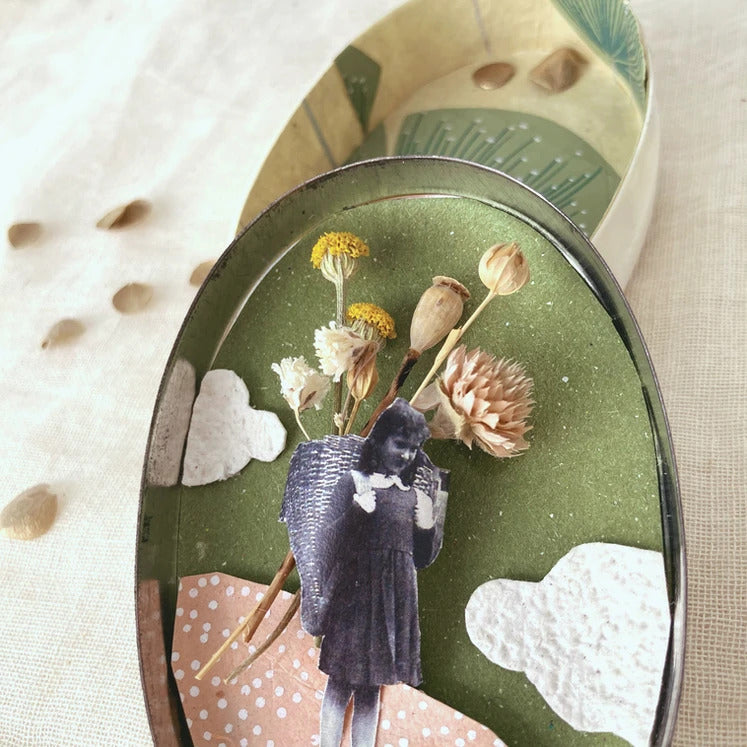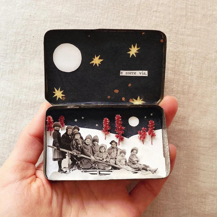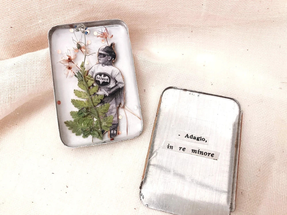 Ad attenderti troverai un buffet ricco di piccoli oggetti antichi, fiori, carte, parole, immagini, e tante altre piccole meraviglie in cerca di una storia. Tu non dovrai fare altro che scegliere la tua scatolina e arredarla.