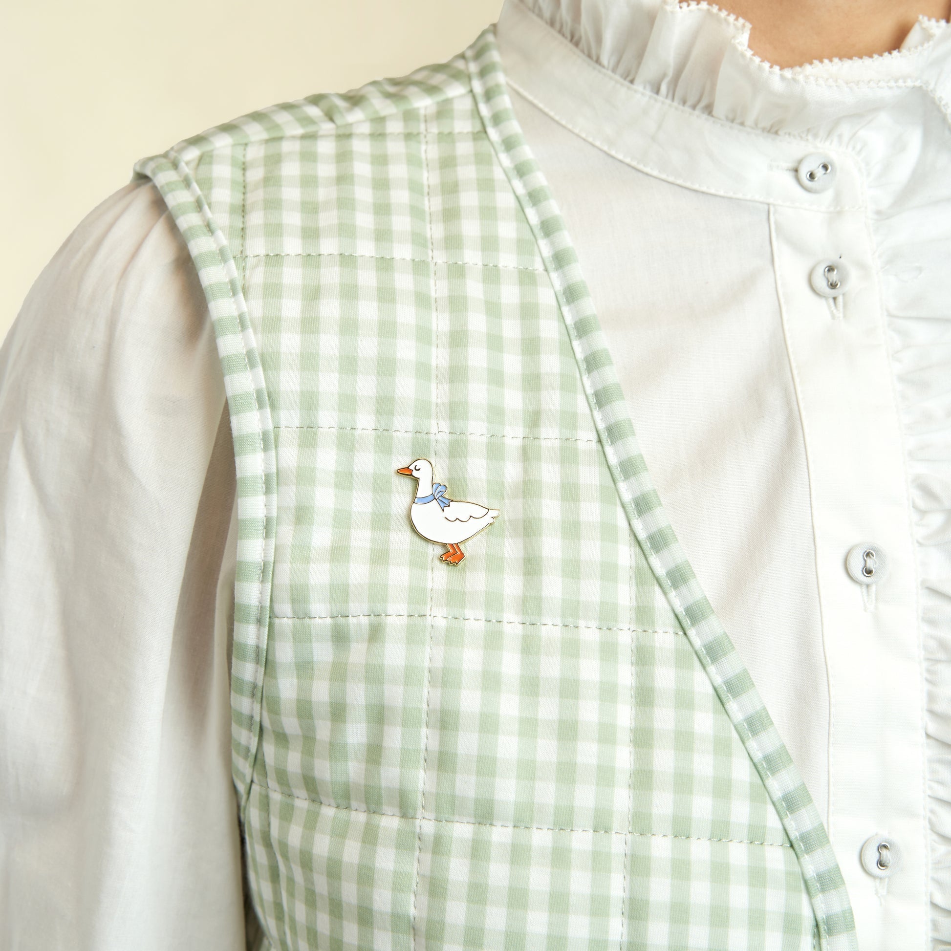 Un'idea regalo perfetta per quell'amico che si è trasferito in campagna —o per il loro piccolo che ama gli animali da fattoria! Questa adorabile spilla smaltata a forma di oca presenta un piumaggio candido e un grazioso fiocco blu. Amiamo il suo faccino orgoglioso, pronto ad appollaiarsi su giacche, borse e tutto il resto.