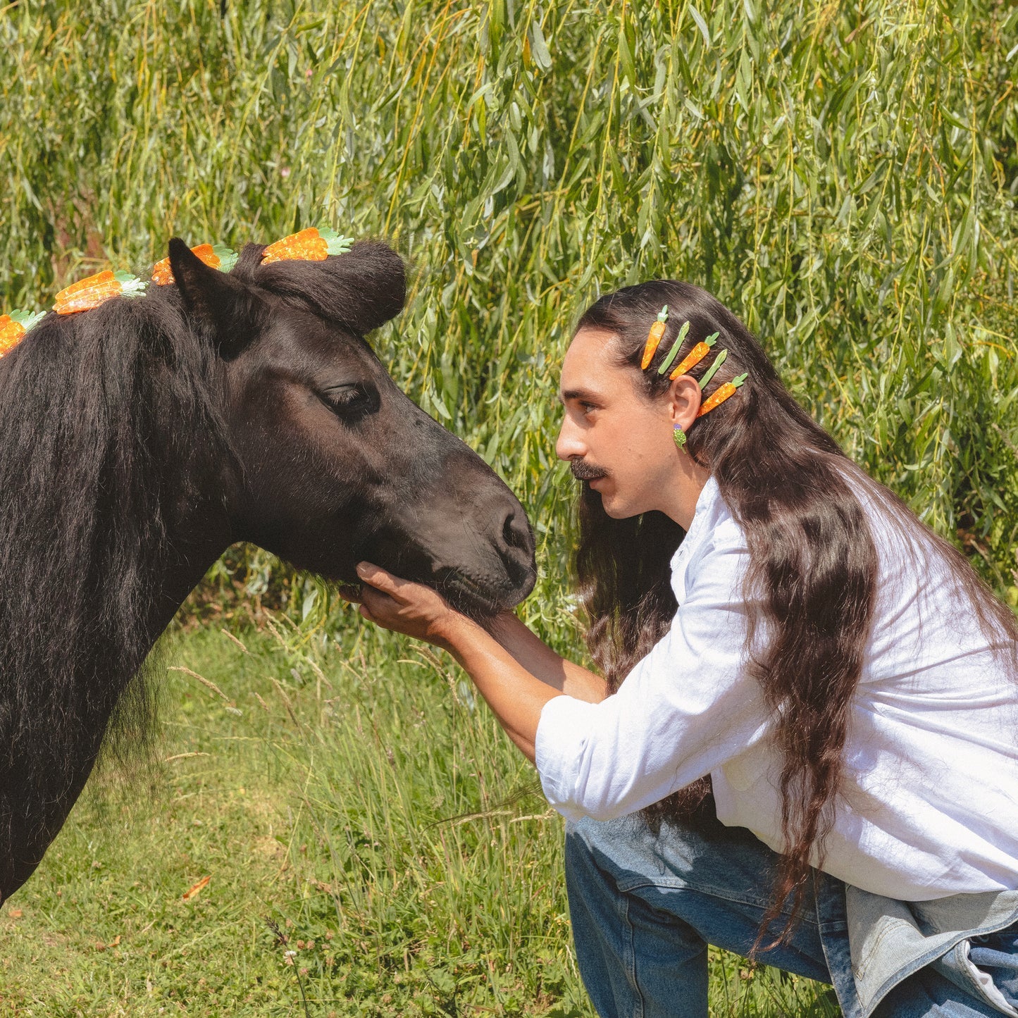 Per un tocco di colore vibrante e una dose di divertimento, scegli la barretta per capelli a carota! Siamo ossessionati da questo accessorio deliziosamente eccentrico che si adatta felicemente a tutti i tipi di capelli.