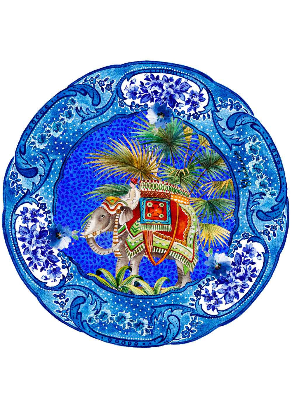 Tovaglietta da Colazione Tonde - SAVANA blu ELEFANTE