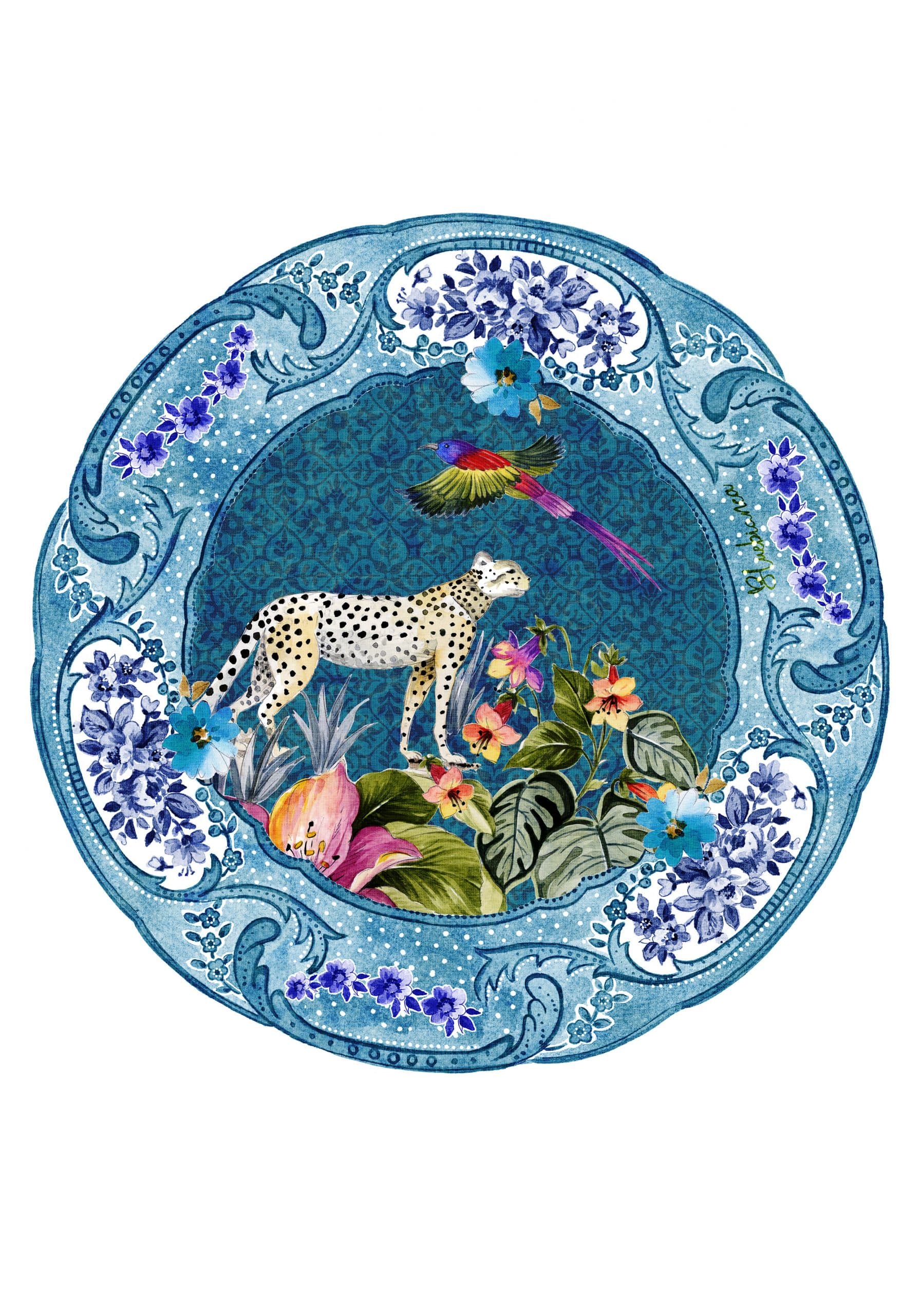 Tovaglietta da Colazione Tonde - SAVANA blu Ghepardo